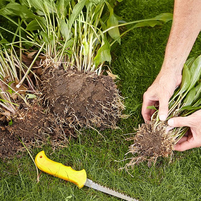Para permitir um amplo crescimento da raiz, cave buracos para as plantas divididas que tenham o dobro do tamanho e profundidade da massa radicular. Além disso, certifique-se de deixar espaço suficiente entre os buracos de plantio levando em consideração o tamanho das plantas quando ficarem adultas em alguns anos.